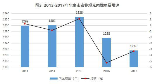 近年來,北京市休閑農業和鄉村旅游的接待人數和產業規模在不斷擴大(圖1、圖2),而休閑農業 園區的數量在不斷減少(圖3),表明了休閑農業園區之間存在著激烈競爭,大量經營狀況不好的休閑農業園區會面臨市場的淘汰,優質的客源會流向經營狀況更好、服務更優質、運營更專業的園區。