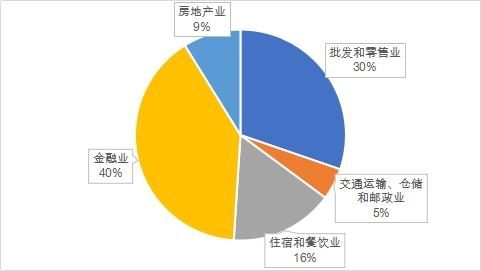 2017年天心區(qū)服務(wù)業(yè)五大支柱產(chǎn)業(yè)占比分別為金融業(yè)、批發(fā)和零售業(yè)、住宿和餐飲業(yè)、房地產(chǎn)和交通運(yùn)輸業(yè)占比分別為40%、30%、16%、9%和5%。金融業(yè)占比達(dá)到40%說(shuō)明現(xiàn)代服務(wù)業(yè)高度發(fā)達(dá),是天心區(qū)服務(wù)業(yè)結(jié)構(gòu)調(diào)整和優(yōu)化的重要表現(xiàn)。房地產(chǎn)業(yè)占比僅僅為5%,說(shuō)明經(jīng)濟(jì)擺脫了房地產(chǎn)“依賴癥”。