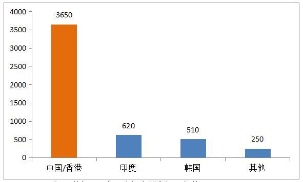 圖2004-2014年亞洲主要國家風(fēng)險(xiǎn)投資募集額(億美元)