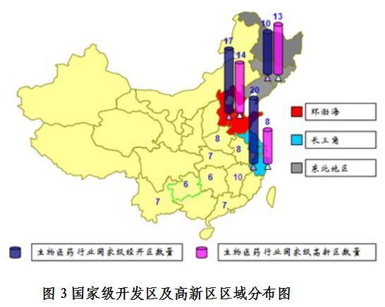 三、從各地區(qū)生物醫(yī)藥行業(yè)國(guó)家級(jí)經(jīng)濟(jì)開發(fā)區(qū)和高新區(qū)分布來(lái)看,仍以長(zhǎng)三角、環(huán)渤海和東北地區(qū)為主