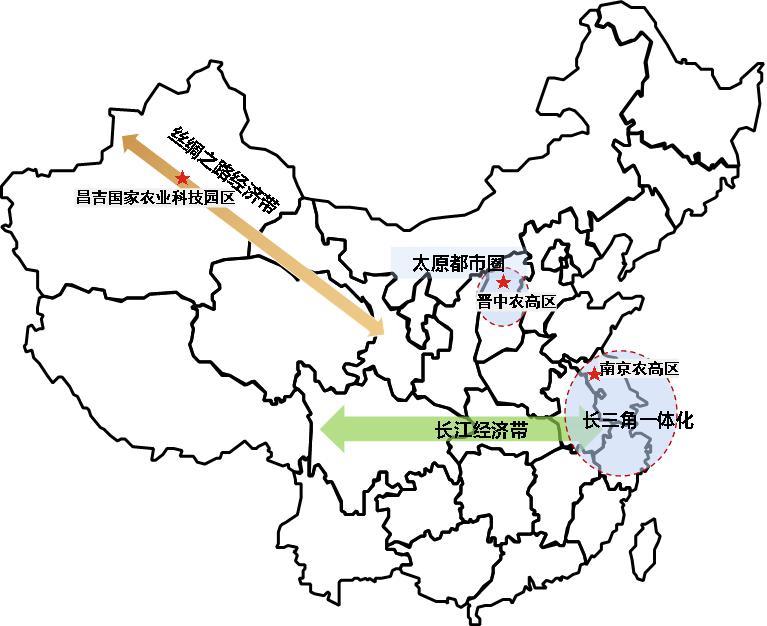 小結(jié):從區(qū)位條件來講,南京農(nóng)高區(qū)位于東部沿海發(fā)達地區(qū)和長三角經(jīng)濟圈核心區(qū)域,與晉中農(nóng)高區(qū)、昌吉國家農(nóng)業(yè)科技園區(qū)相比,區(qū)位優(yōu)勢和國家戰(zhàn)略疊加效應(yīng)更加明顯。