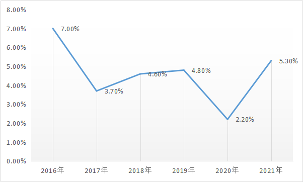 圖3-1 2016-2021年石化規(guī)模以上企業(yè)工業(yè)增加值增速