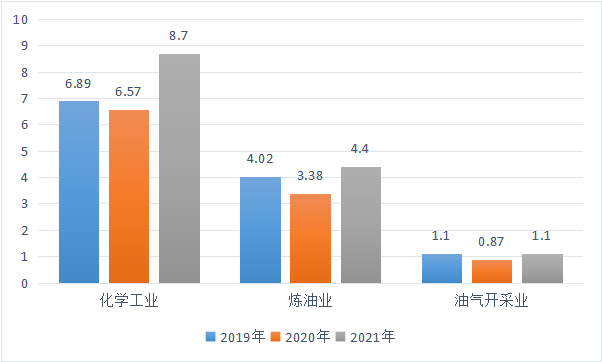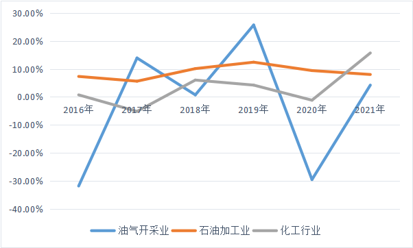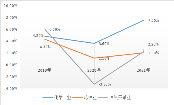 ——產(chǎn)業(yè)規(guī)模持續(xù)增長。2021年全行業(yè)規(guī)模以上企業(yè)實(shí)現(xiàn)工業(yè)增加值同比增長5.3%,油氣開采、煉油業(yè)、化工行業(yè)三大主要板塊增加值均有不同程度增長。