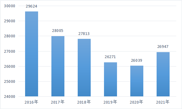 圖3-3 2016-2021石化行業(yè)規(guī)上企業(yè)數(shù)量變化(家)