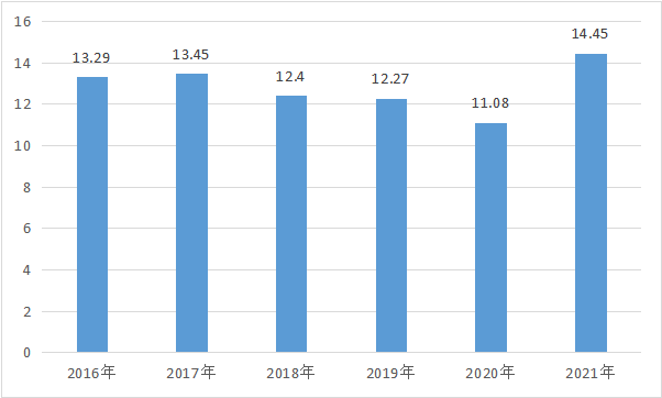 ——經(jīng)濟(jì)效益顯著提高。2021年石油和化工全行業(yè)規(guī)模以上企業(yè)26947家,較2016年減少2667家;累計(jì)實(shí)現(xiàn)營業(yè)收入14.45萬億元,占全國規(guī)模工業(yè)主營收入的比重為11.3%,較2016年增加1.16萬億元;利潤總額首次突破萬億元,達(dá)到1.16萬億元,較2106年增長80.0%;利潤率為8.04%,2010年以來最高。