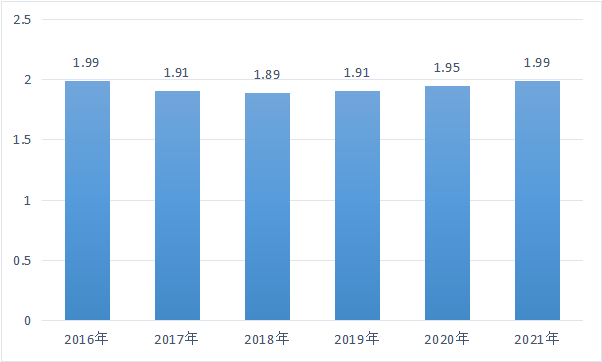 圖3-9 2016-2021年國內(nèi)原油產(chǎn)量(億噸)