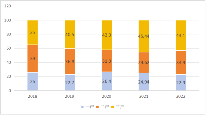 圖表4:2018-2022年江陵縣三次產(chǎn)業(yè)結(jié)構(gòu)變化