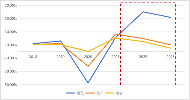圖表1:2018-2023年江陵縣工業(yè)增加值及增速變化