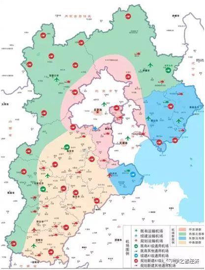 全省規劃布局東部沿海、環京津、西部北部、中南部四個通用機場群。東部沿海機場群滿足經濟較發達的沿海地區快速增長的短途運輸、私人飛行需求以及為高端裝備制造業發展提供支撐;環京津機場群主要疏解和服務京津地區的公務、私人飛行、維修托管等市場需求;西部北部機場群重點在提升落后地區、山區及地面交通不便地區的交通基礎設施水平,保障群眾出行,增強對產業發展、資源開發的支撐能力;中南部機場群將滿足人口較稠密的平原地區短途運輸需求、完善機場網絡布局。